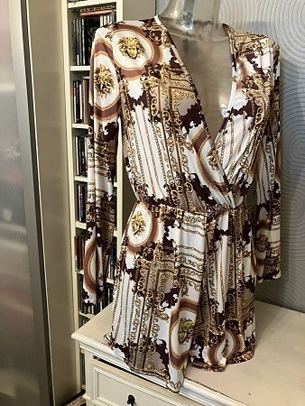Uutta kotia etsii kuvan joustavaa laskeutuvaa asetaattia oleva musta mekko Marc Cainilta edessä koristesolki