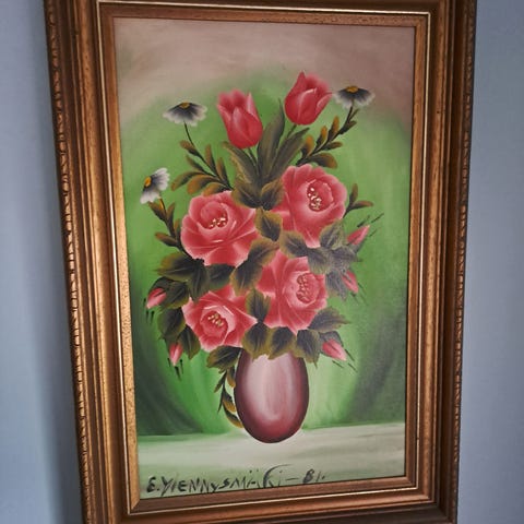 Erittäin siisti ja hyväkuntoinen taulu. Eini Myllymäki, koko 44 cm x 50 cm. Ehkä 1946.