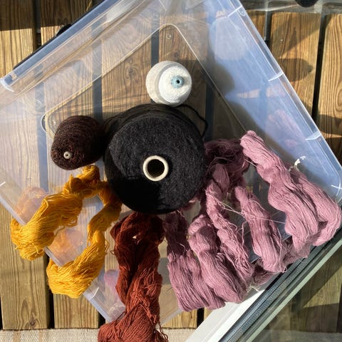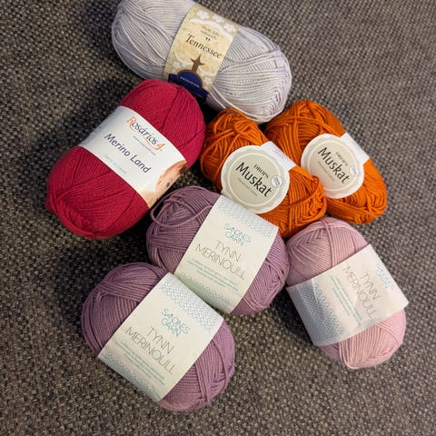 Iso kasa erilaisia lankoja ja keriä värikkäitä ja luonnonvärejä