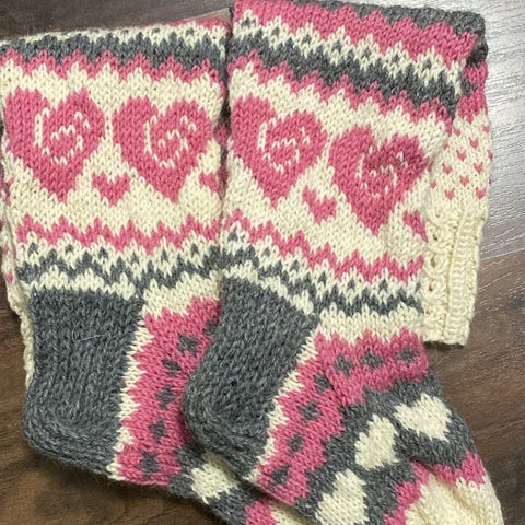 Mummin kutomia uusia villasukkia. Pehmeitä ja joustavia ja sopii monen kokoiselle jalalle. Arvioisin kokoa 39-42.