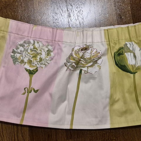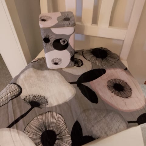 Ihanat Satakieli kankaasta ommellut verhokapat.