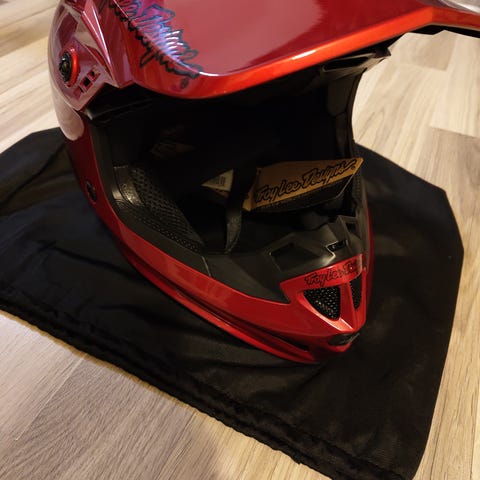 Pari kertaa käytetty Troy Lee Designs GP -crossikypärä. Kypärän kuori on kevyttä polyakryylia ja kolme kuorikokoa takaavat hyvän istuvuuden. Joustava polypropeeninen alareuna vaimentaa niskatuen osumaa. Lippa on kiinnitetty muoviruuveilla, joiden sisus on messinkiä ja jotka antavat lipan irrota onnettomuuden sattuessa. Hätätilanteessa irrotettavat poskipalat vähentävät ylimääräistä vahinkoa. Hyvin ilmastoitu kypärä on miellyttävä käyttää, sillä siinä on peräti 16 sisääntulokanavaa.