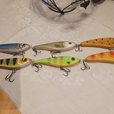 Kolme Savage Gearin jerkkiä, käytännössä käyttämättömiä. Yhdestä puuttuu koukut.