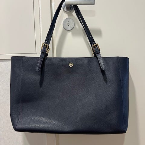 Myytävänä uusi Tory Burchin Small Perry tote -nahkainen käsilaukku. Laukussa on yksi iso olkahihna säätövaralla ja kantokahvat. Pohjassa kullanväriset nastat, joiden avulla laukku pysyy hyvin pystyssä. Lappu paikoillaan ja mukaan tulee myös dust bag.