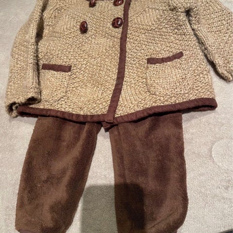 Zara lasten neuleasu, koko 74, vaaleanpunainen väri. Materiaalina neulottu kangas. Settiin kuuluu kietaisu neulepusero ja housut.