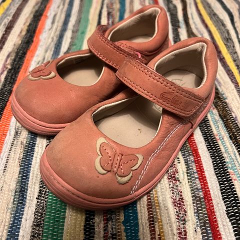 Clarks lasten nahkakengät kokomerkintä 6, eli 22. Sisäpohjan mitta n. 14,5 cm. Värit ruskea ja sininen. Kengät sopivat päivittäiseen käyttöön. Vähän käytetyt!