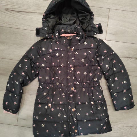 Siisti, ehjä Kappahlin toppatakki, käytetty lähinnä kauppareissulla eikä missään rymyleikeissä. Hupun reunuskarva vähän littanassa, muuten takki on lähes uudenveroinen. Hupun ja myös karvareunuksen saa irti.
