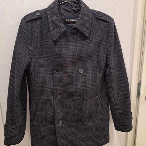 Sisällä "tikkitakin" tyylinen toppatikkaus ja vetoketju menee nappirivistön alla. Sivuilla avotaskut, alhaalla helmassa nappitaskut ja takin sisällä vetoketjullinen sivupovitasku ja napillinen povitasku. Sisällä myös varanappi vielä kiinni.