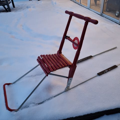 Myydään vähän käytetty ESLA T2-mallin lasten potkukelkka. Muuten erinomaisessa kunnossa, mutta istuinosaa korjattu (ks. kuva). Korjaus ei vaikuta kelkan ulkonäköön eikä käyttökokemukseen.