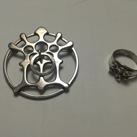Vanha Inarin hopea koira rintaneula. Nouto Eurajoki tai sovitusti Rauma.
