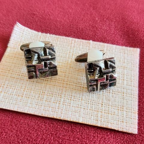 1960-luvun vintage-ruutukuvioiset kalvosinnapit, suuret valkoiset ja savunväriset helmiäiskuoren väriset, kullanväriset reunukset/ kiinnitys.