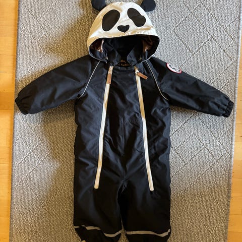 Talvihaalari Minirodini panda. Koko 80 cm. Samanlainen haalari myös koossa 86 cm. Nouto myös mahdollinen. Ei eläintalous.