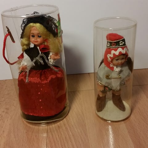 Kaunis hyväkuntoinen koristenukke, jolla on kasvot, kädet ja jalat posliinia ja vartalo muuten on tekstiilipintainen. Nukke on puettu hatulla, huivilla, mekolla, essulla, tyllialushameella ja varrellisilla alushousuilla. Sillä on myös sukat ja kengät sekä koru kaulassa. Kaikki saa riisuttua pois. Nukke seisoo erillisellä telineellä.