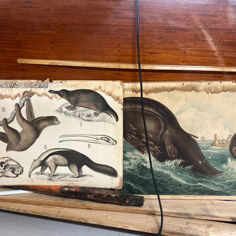 Vanhat opetustaulut hampaista, kansakouluajalta.