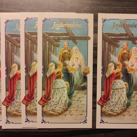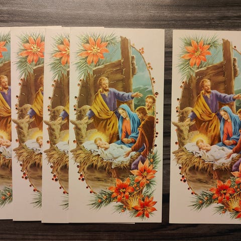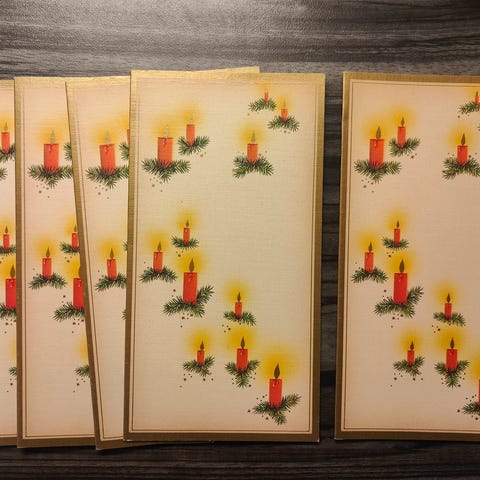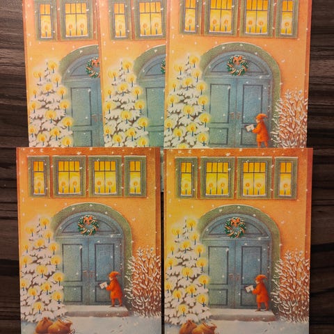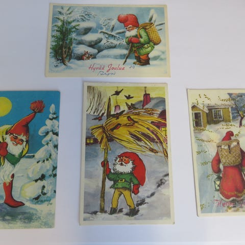 Joukko joulukortteja, joissa on erilaisia kuvituksia. Korttien koko ja materiaali vaihtelevat. Kortit sopivat joulun lähettämiseen ja koristekäyttöön.