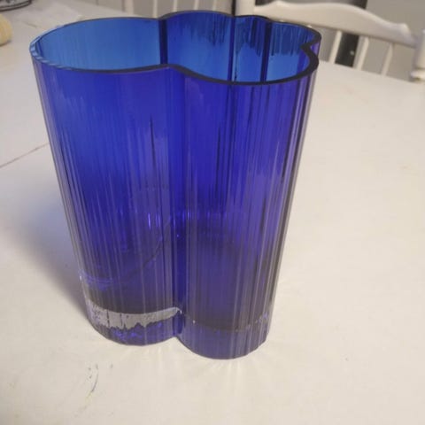 Myydään siistikuntoinen ja ehjä taidelasimaljakko. Lasipuhallus Ateljee Rajalahti. 17cm.