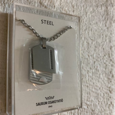 Myydän Saurumin valmistama hopeaa olevat kaulakoru ja korvikset.