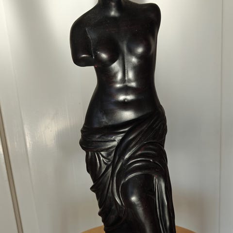 Marwal -patsas, tyttö, joka kantaa sankoa. Patsaan korkeus 68 cm, paino 10,3 kg. Jalustassa jonkin verran ajan patinaa, kolhuja.