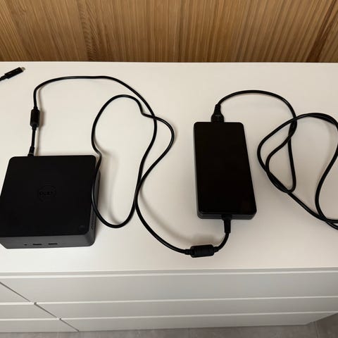 Dell TB16 telakointiasema Thunderbolt-yhteydellä. Yht 5 USB-porttia, DisplayPort-, Mini DisplayPort-, HDMI- ja VGA-liitännät, Gigabit Ethernet, kuulokeportti ja Thunderbolt-läpivienti.