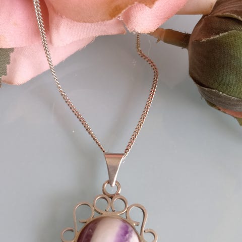 Hopeinen kaulakoru kivillä