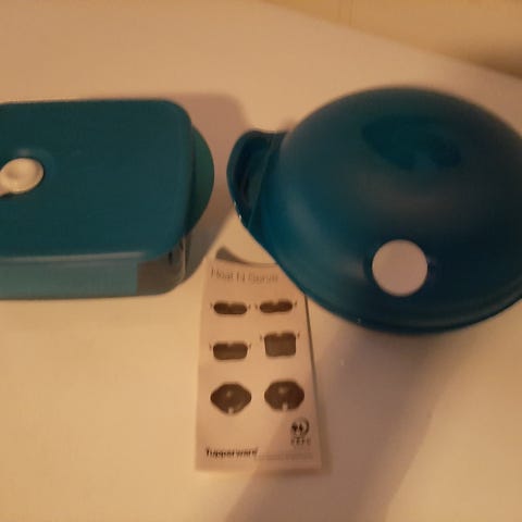 Tupperin loistavia astioita mikroon tai uuniin. Valmistamasi ruuan voit asettaa suoraan tarjolle kauniissa astiassa tai anna vaikka astia lahjaksi. Myydään kaikki yhdessä 35€.