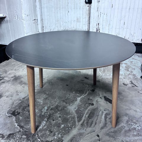 Myydään pyöreä ruokapöytä halkaisija 120cm ja neljä tuolia. Kunto siisti käytetty. Pöytälevyn pinnassa on pientä naarmua ja käytön jälkeä, näkyy kirkkaassa valossa. Tuoleissa pinta kulunut mutta täysin ehjä.