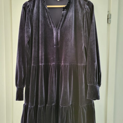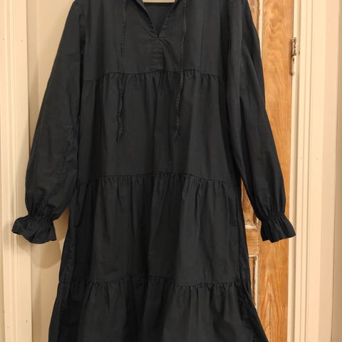 Myytävänä One With Nature -merkin tummanvihreä mekko. Ohutta vakosamettia, avara savupiippukaulus, napit kauluksen sivussa, taskut, muotolaskokset, hieman pussimainen helma, vajaamittaiset hihat. Pit. noin 95, kai-kai 56, lantio 64, hihan sisäpit. 28. Väljä M-koko.