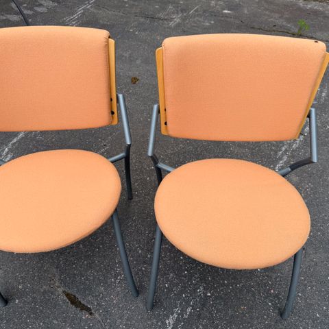 Martela Intimo tuolit. 4 kpl hyväkuntoinen päällyskankaat, 4 kpl vähän haalistunut päällikangas. 3 kpl samankuosisia käsinojilla. Palosuojattu kangas.