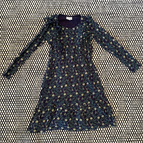 Valmistettu 60 % kierrätetystä puuvillasta ja 40 % kierrätetystä polyesteristä. Mekossa on pitkä hiha ja vyötäröllä nyöri. Halkiot sivuilla. Sopii arkipukeutumiseen.