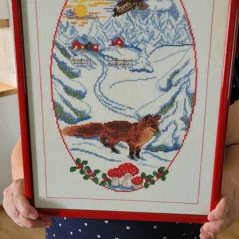 Myyn jouluaiheisen taulun jonka olen itse tehny! Ristipistotyötä on kiva tehdä silloin kun on aikaa ja motivaatiota. Kehys on hyvässä kunnossa ja lasi suojaa käsityötä!
