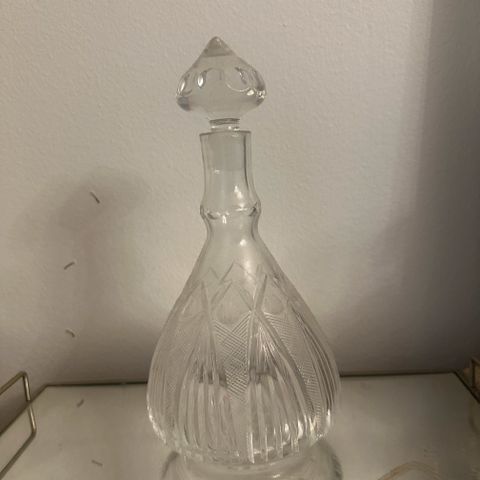 Myydään kuvassa näkyvä viinikarahvi. Tilavuus 0,5 litraa. Korkeus korkin kanssa 24 cm. Ehjä. Korkin tiivisteessä jonkin verran punertavaa väriä. Ainoastaan nouto erillisen sopimuksen mukaan eli en lähetä tuotetta.