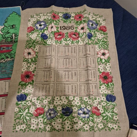 Puuvilla kankaalle kirjottu Arabian astiaston koristekuvio SÄDE.