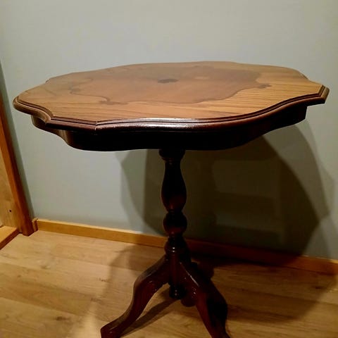 Myydään kuvassa näkyvä pieni rokokoo pöytä kunnostettavaksi. Pöydässä on erittäin kauniit koristeleikkaukset. Itse pöytä on rakenteeltaan tukeva, mutta puinenpinta vaatii täydellisen kunnostuksen. Pöytälevyn lakkaus hilseilee voimakkaasti.