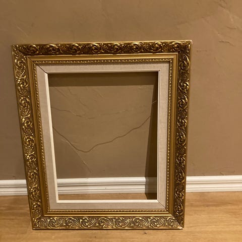 Raskas koristeellinen messinkikehys barokki/rokokoo-tyyliin.