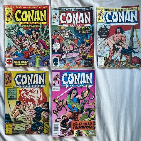 Kaksi vanhaa Conan barbaari lehteä. Hyvä kuntoiset. Molemmat vuodelta 1995, numerot 3 ja 5. Molemmat yhteishintaan 18e