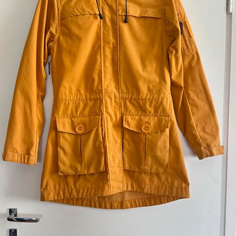 Oranssi Varustelekasta ostettu Särmä-merkkinen parkatakki. Koko s, itselle ollut sopiva xs-kokoisena. Pitää hyvin vettä ja tuulta.
