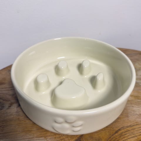 Keraamiset Scruffs Icon juoma- ja ruokakuppi, väri vaaleanharmaa. Juomakupin halkaisija 20cm ja korkeus 11cm, ruokakuppi halkaisija 15cm ja korkeus 5cm.