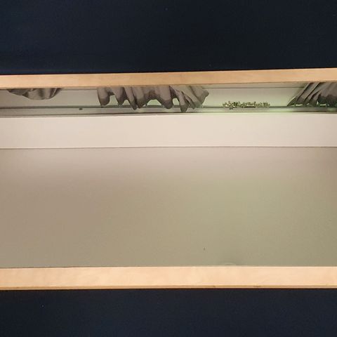 Kaiverrus Helmi 24.6.43. Peilin pituus 35cm. Pientä häikkää peililasissa mutta sisäpuolella.