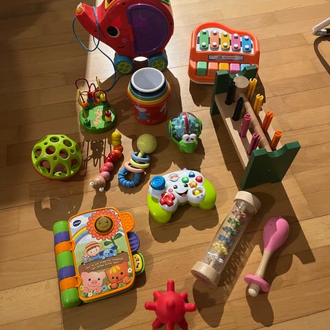 Vauvan leluja iso kasa. Done By deer, Fisher Price, Lego -merkeiltä mm. Puruleluja ja helistimiä. Puuleluja.