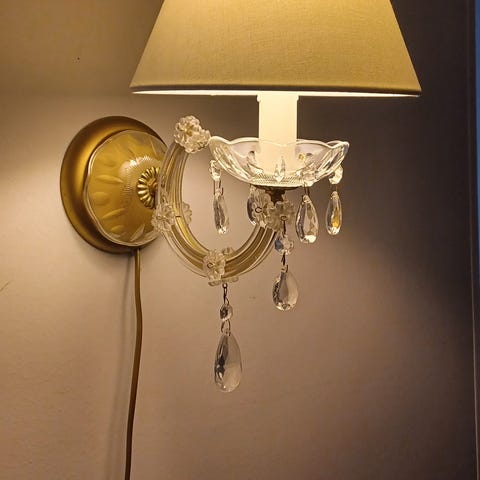Kaksihaarainen Maria Teresia seinävalsisin irroitettavilla varjostimilla. Hyvä kunto. Vanhanaikainen pistoke, vaihdettavissa. Nouto Veräjämäestä tai voin tuoda sopimuksen mukaan lähialueelle.