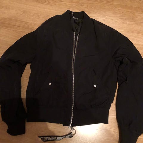 Musta pitkä pilottityylinen takki Boomerang merkiltä. Koko xs, mutta mielestäni reilu mitoitus.