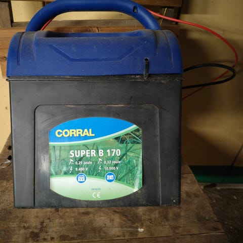 Tämä on yhdistelmäpaimen mutta pistokkeen johto hukassa. Eli tällä piuhalla vain akulla toimiva. Ollut 2 kesää laitumessa jonne sähkö ei yllä.