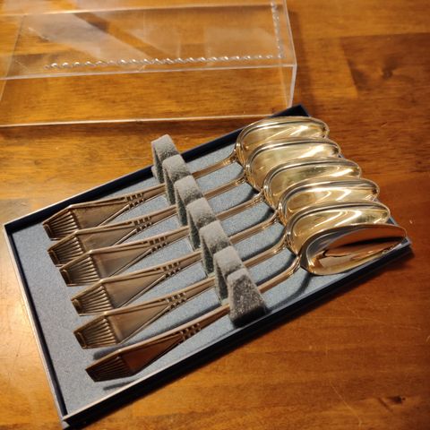 Suomi kahvilusikat. Varressa vaakunat ja pesäosassa lukee Suomi.