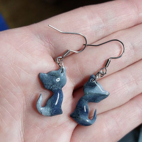 Kissa korvakorut - käsityönä tehty