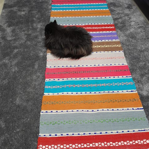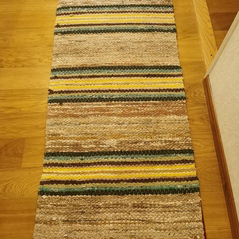 Vihreä räsymatto. Ollut varastossa. Otettu ulos vain kuvien ajaksi.