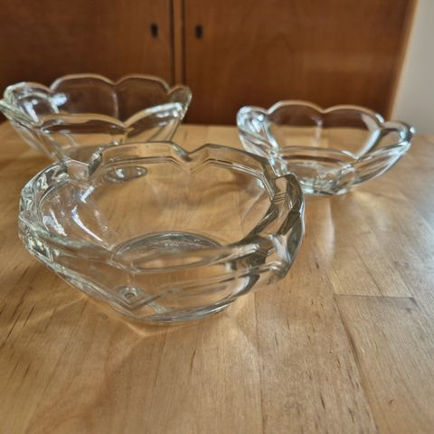Paksusta lasista tehdyt, hiotut jalat. Jaloissa on siirtelystä tullut normaalia kulumaa, muuten ovat hyväkuntoiset!