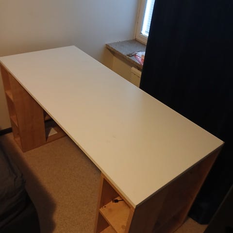 Selling white study table with hinged top. Dimensions when open: 120x60x69, when closed: 128x65x79.