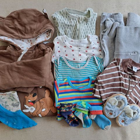 Myydään lastenvaate paketti koko 68. Paketissa haalari, 2 mekkoa, 7 body, 3 yöpuku ja 2 housut. Ehjiä ja pesty hajusteettomalla pesuaineella.