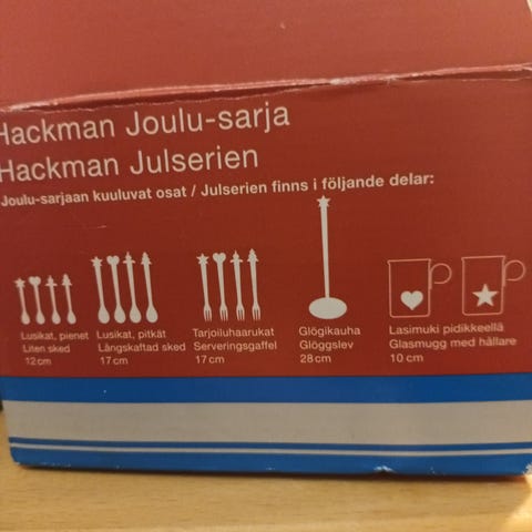 Hackmanin joulusarjan 3 glögilusikkaa ja 3 leikkelehaarukkaa