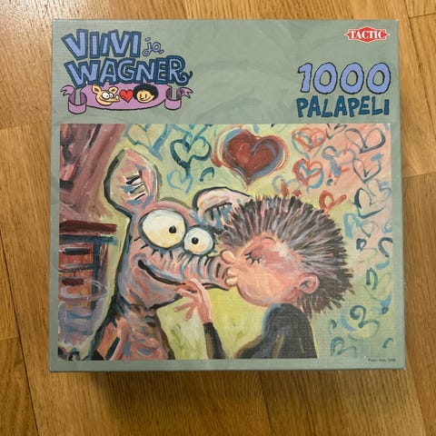 Lasten nostalginen palapeli. Viki Vesseli. Käytönjälkiä näkyy. Takana kirjoitusta.